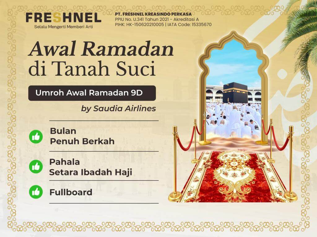 - PT Freshnel Kreasindo Perkasa berhak menunda keberangkatan calon jamaah apabila belum melakukan pelunasan sampai waktu yang ditentukan atau belum memenuhi persayaratan sebagai jamaah umroh yang ditetapkan oleh pemerintah Indonesia dan Kerajaan Saudi Arabia.