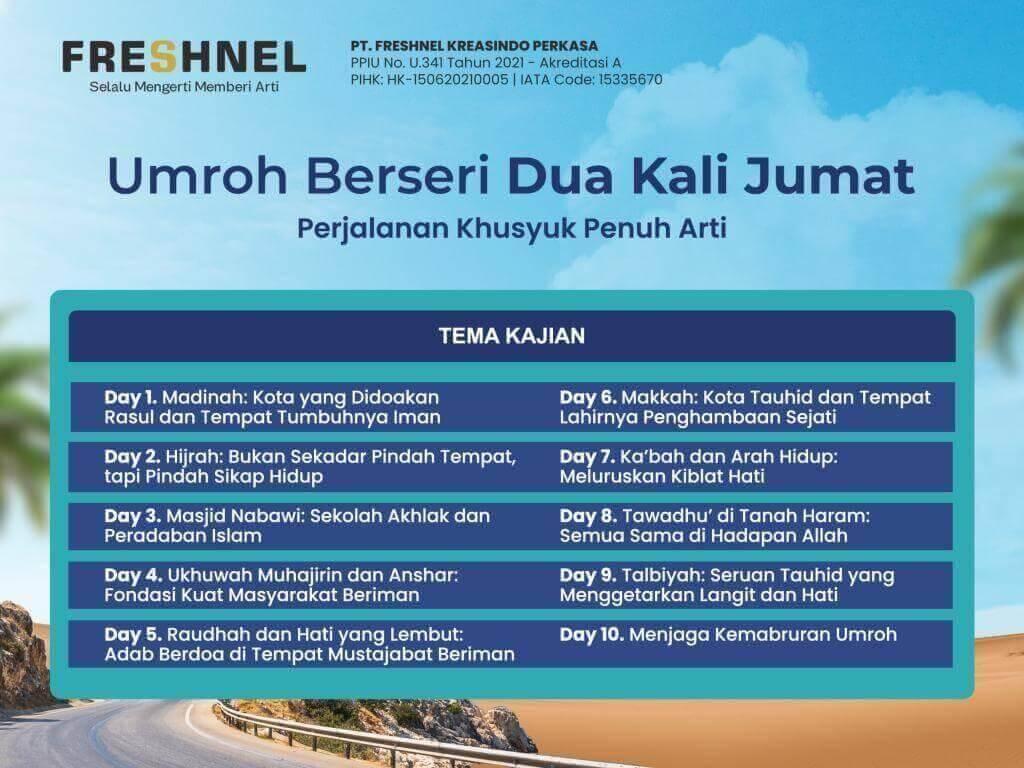 - Memberikan identitas resmi sebagai jamaah umroh Indonesia yang dikeluarkan melalui system SISKOPATUH dan identitas lainnya sebagai jamaah PT Freshnel kreasindo Perkasa.
